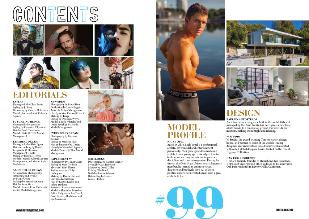 Also in this issue, we have a model profile feature with Nick Topel - professional athlete, cover model and entertainment personality. With his great look, a national champion's body and a fantastic attitude, it's not surprising that everyone wants to work with him. HUFMagazine seized the opportunity to speak with Nick and discover more about him.